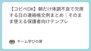 朝だけ体調不良で学校を欠席する日の連絡帳文例を紹介。起床時の不調・登校前の腹痛や頭痛など、状況別にコピペOKで使える例文をまとめました。